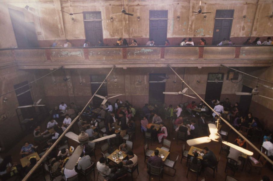 A régi, még a gyarmati korszakból származó épületnek, ennek az állandóan nyüzsgő helynek élő, eleven lelke van. Igaz, a kávé minősége hagy némi kivetnivalót maga után, de a régi korokat idéző, turbánt viselő pincérek látványa, ahogy légies mozdulatokkal suhannak az asztalok között, teszik a frissen főzött kávét és némi harapnivalót a vendég elé, kárpótol mindenért. A magas falak, a szinte végtelen térből csüngő régi lámpák és ventillátorok egy múlt századi, megsárgult kávéházi fotó hangulatát varázsolják elő. A sosem halkuló teremben éles hangokat, kanálcsörgést, hangos szót hiába keresünk, csak egyfajta kellemes morajlás hallatszik. Tekintetemmel körbejárom az egész teret, megpillantom a dohányfüsttől patinát kapott régi erkélyt, és képzeletemben a kávézó múlt századi világa egy pillanat alatt életre kel. Az öltönyös angol úriemberek vastag kubai szivar és egy pohárka whisky társaságában komoly témáról beszélgetnek. Az elegáns hölgyek pedig frissen főzött, gőzölgő kávéjukat kortyolgatva csevegnek, élvezik a társaságban töltött idő minden pillanatát. Talán még a szivar füstje, a hölgyek parfümjének lágy illata is megelevenedik. Sőt, talán még maga Phileas Fogg is megjelenik 🙂