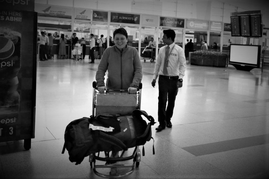 Négy darab, összesen csaknem 100 kilónyi feladandó poggyászunk volt, de sikeresen útnak indítottuk valamennyit. A beszállókártyákat is megkaptuk, a vámellenőrzésen is sikeresen átjutottunk, indulásra készen, már a biztonsági öveket becsatolva ültünk a repülőgépben. Vártunk, vártunk és vártunk. Legalább húsz percnyi várakozás után végül a kapitány szólt a kedves utazó közönséghez. Sajnos a január 26-i nemzeti ünnep miatt a civil légteret lezárták, az Indiai Légierő a katonai parádéra gyakorol. Így kénytelenek vagyunk a startvonalnál legalább 2 órát várakozni. Hát gyakoroljanak, gondoltuk, csak érjük el a bécsi jártunkat Delhiben. Eredetileg ugyanis az átszállásra össze-vissza volt 3 óránk, ami Indiában annyit jelent, hogy nagyon-nagyon szoros. De így, az elméletileg rendelkezésünkre álló 1 óra alatt valószínűleg kizárt, hogy a csatlakozást elérjük. Mindegy, majd lesz valahogy, gondoltuk, és komótosan ropogtattuk az időűzőnek felkínált pörkölt mogyorót és a friss citromlét.
