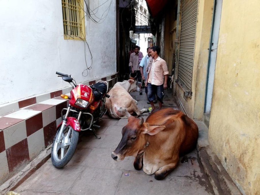 Sokféle megjelenésük ellenére az óriási fikuszok vagy a régi, dülöngélő épületek árnyékában valamennyien békésen tudnak pihenni. A májusi-júniusi hőségben a pimasz legyek társasága ellenére kedvükre szunyókálnak. Ha pedig megunják, akkor komótosan sétálnak egyet a szűk utcácskákon vagy akár a főutcán, sokszor megbénítva ezzel a közlekedést. Néha megállnak, belesnek egy-egy boltba vagy otthonba. Ilyenkor a ház asszonya kedves vendégként fogadja őket és a helyzettől függően káposztalevéllel, uborkával vagy egy darab rotival kedveskedik a szentként tisztelt állatnak.