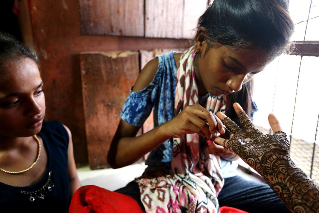 Mehendikor, pontosan az esküvőt megelőző délutánon, összegyűlnek a lányok, asszonyok és egy olyan igazi lányos délutánon hennával díszítik egymás kezét, tenyerét, karját, ujjpereceit. Meghitt pillanatok ezek, amikor jókat lehet beszélgetni és megcsodálni, ahogyan az ügyes lányok gyönyörű keleti mintákat varázsolnak egymás kezére. Az indiai lányok pedig mesterei ennek a művészetnek. Éveken át szorgalmasan gyakorolják, mert a hennával való festés csínyját-bínját még az iskolában is tanítják. Habár az ideiglenes testfestés ezen formája még a Mogul korból származik, és az arab világban komoly hagyománynak örvend, mégis a nyugati világ a díszes hennafestést elsősorban az indiai menyasszonyokhoz köti.