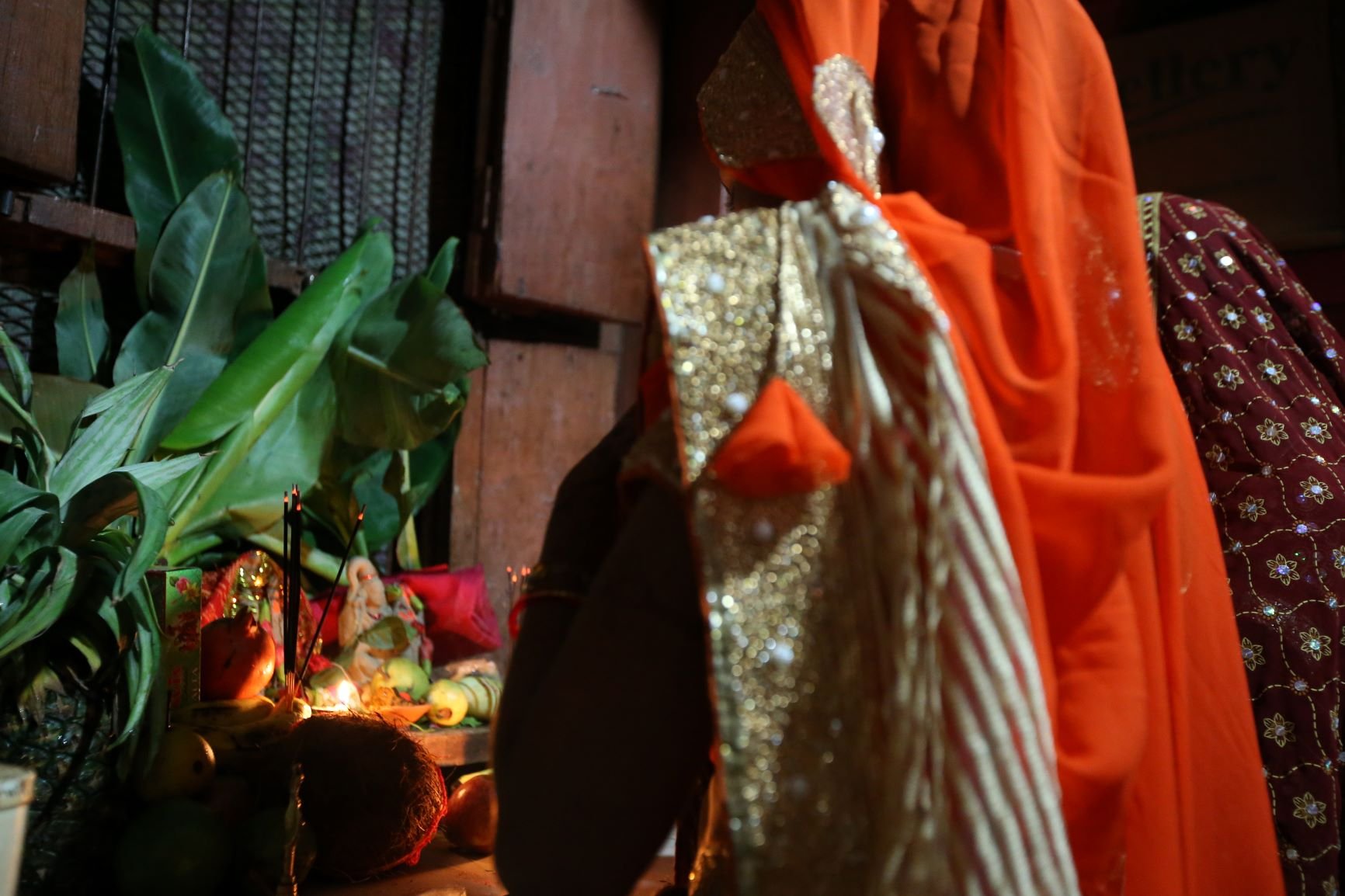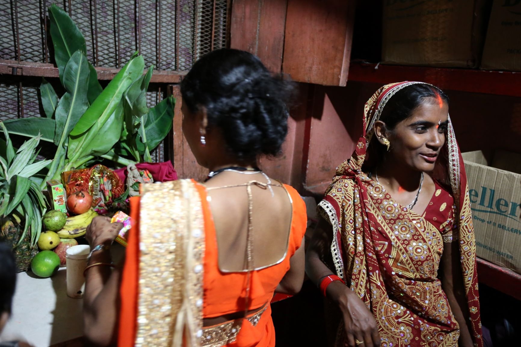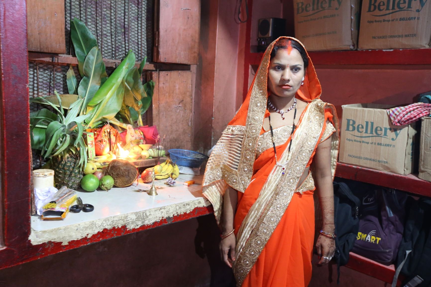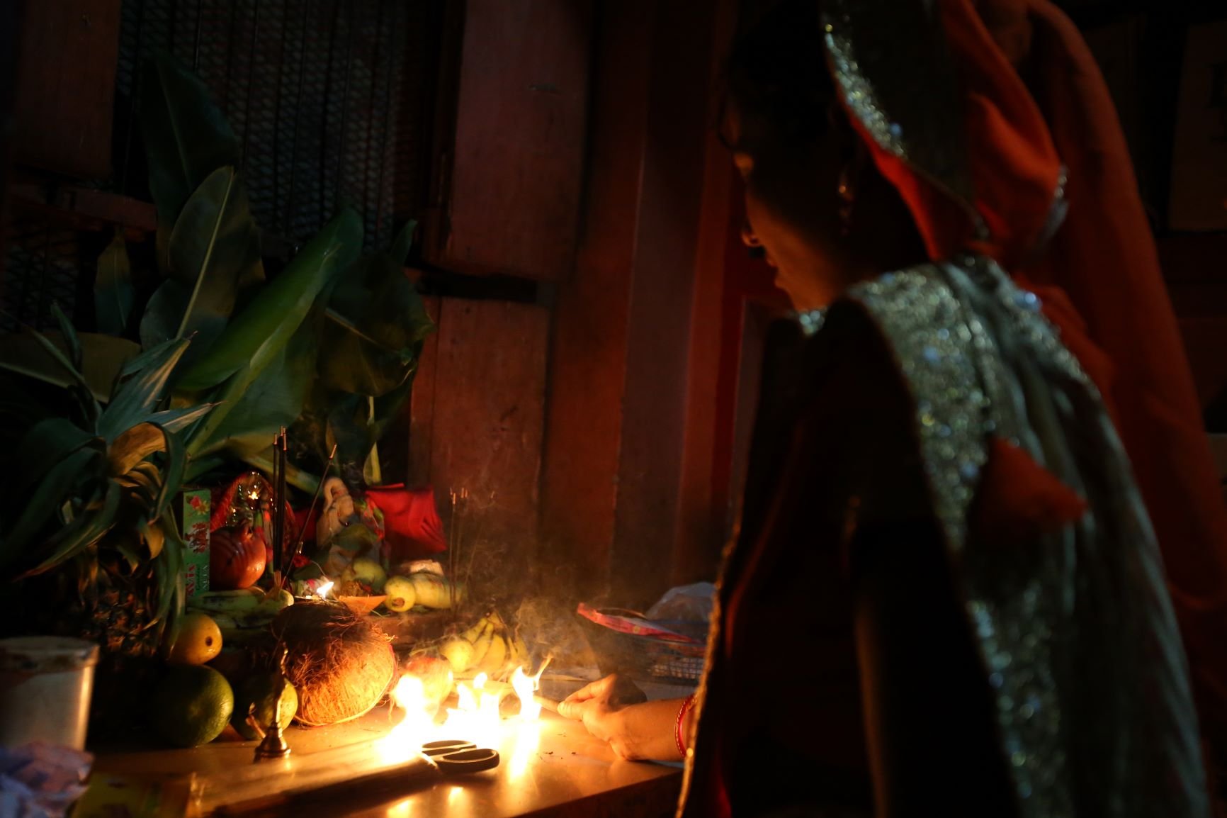 Aztán elérkezett az esti púdzsa bemutatásának az ideje. A hangulat ünnepi mivoltát az erre az alkalomra készített díszes oltár, a körülötte elhelyezett ízletes gyümölcsök, édességek, füstölők és egyéb más fontos tárgyak tovább emelték. Elkezdődött az imádság, valamennyien lélegzetünket visszafojtva figyeltük az eseményeket, teljes valónkkal átadtuk magunkat a pillanatnak, amikor az idősebb nővér, Nísa, egyszercsak széles mosollyal ugyan, de minden előjel nélkül a szemünk előtt összerogyott. Mint a rongybaba, úgy feküdt mozdulatlanul a talajon. Mi pedig MacW-val néztünk egymásra értetlenül, ugrottunk volna a segítségére, de a többiek várakozásra intettek bennünket. És mielőtt erősködtem volna, hogy itt tényleg segítségre van szükség, a helyzet meg is oldódott. Pár másodperc után Nísa, mintha csak Csipkerózsika álmából ébredt volna, széles mosollyal körbenézett, óvatosan felállt és folytatta a szertartást ott, ahol abbahagyta. A többiek pedig, picit szégyenlősen, picit aggódva, nevetve csak annyit mondtak: Nísa és a böjt. Mindig ezt csinálja. Mi lesz így a boldog házassággal?