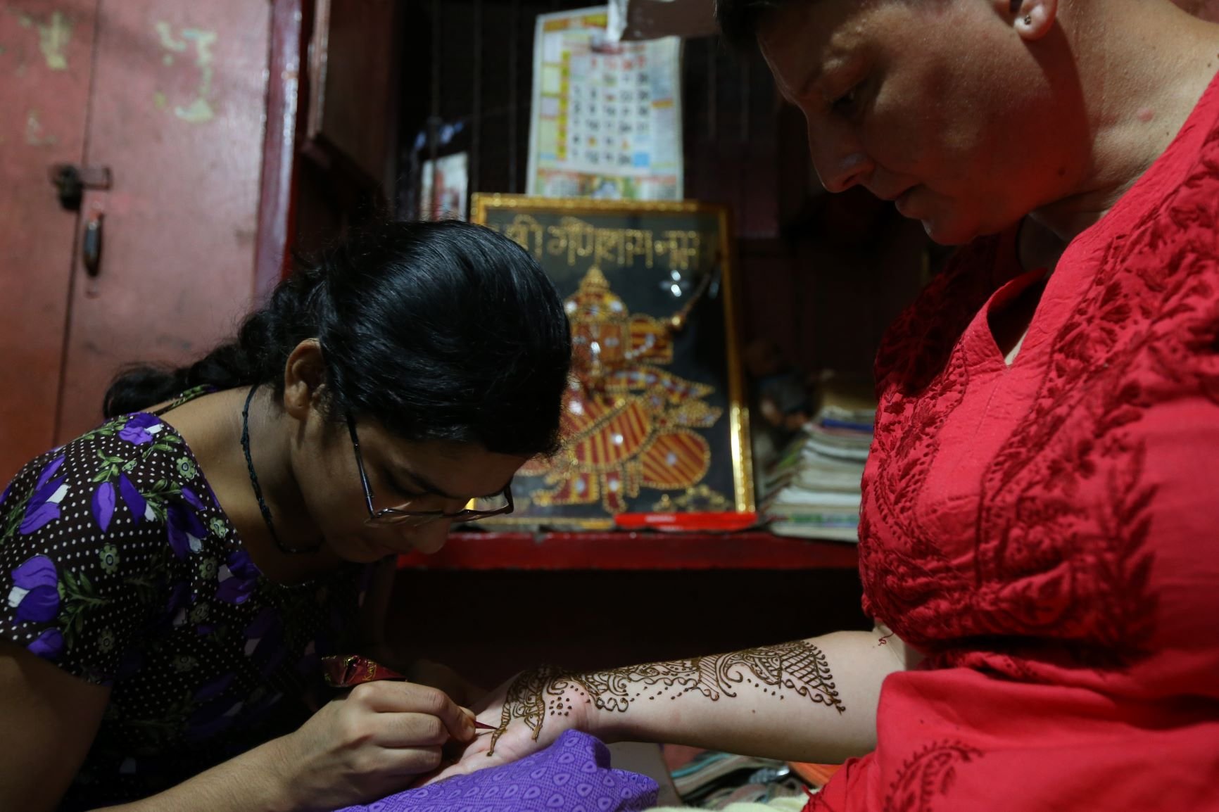 Ilyen tídzs ünnepen volt szerencsém nekem is részt venni. Mondanom sem kell, óriási élmény volt egy hagyományokat igencsak tisztelő női közösségben megtapasztalni az ünnep erejét. Látni, ahogyan díszbe öltöztetett szívvel, szebbnél szebb szárikban jönnek a lányok a szülői házba. Nagybetűs ünnep lévén a feldíszített házban valóban volt idő mindenre: énekre, beszélgetésre, ráérős hennafestésre. Ezen a napon nem volt házimunka, sőt, főzés sem, a férfiak és a gyerekek házon kívül étkeztek. Ugyanis a mi családunk asszonyai ahogyan illik, szigorú böjtöt tartottak. Olyannyira, hogy néhányan az általában 24 órás böjtöt, 48 órára emelték. Mi csak aggódva figyeltük őket, hiszen a 35 fokos hőségben étel és víz!!! nélkül két napot és két éjszakát kibírni, ez bizony nem kezdőknek való kihívás.