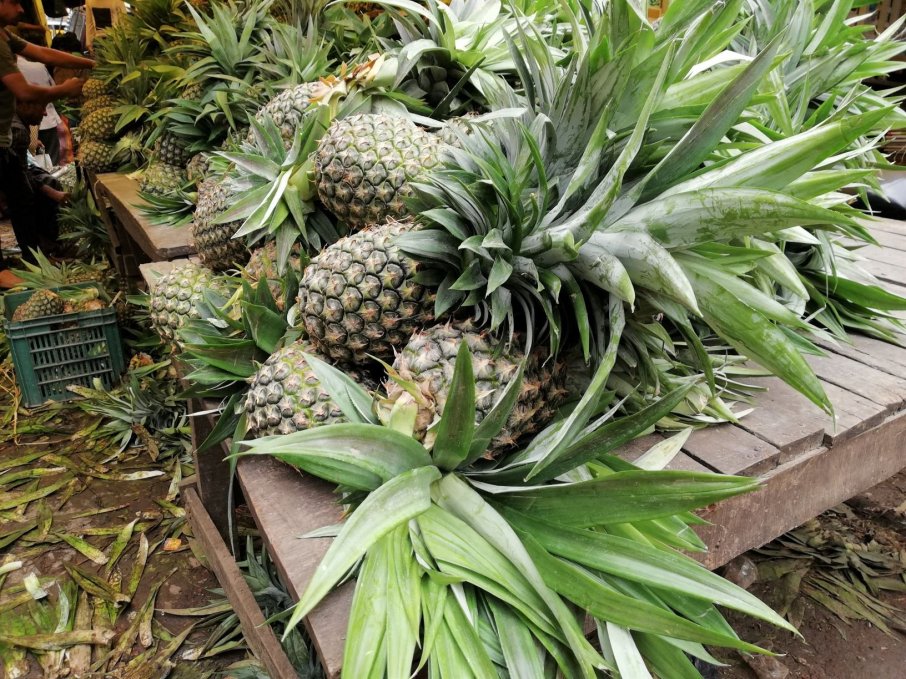 Egy utazós nap délelőttjén, indulásra készen, még egy utolsó pillantást vetettünk a szobánkra, amikor megakadt a szemünk egy illatos ananászon. Ott feküdt az asztalon, még előző nap vásároltuk, hogy majd vacsorára megesszük. De valahogy megfeledkeztünk róla. Mi legyen vele? Együk meg! Most azonnal! A következő pillanatban már MacW újságpapírra fektetve hámozta a trópusi gyümölcsöt, ami persze távolról sem ment olyan ügyesen, mint ahogy azt a helyiek játszi könnyedséggel teszik. Inkább kitartó ananász faragás volt, az édes ananászlé csurgott mindenfelé, mi pedig jókat nevettünk saját ügyetlenségünkön.