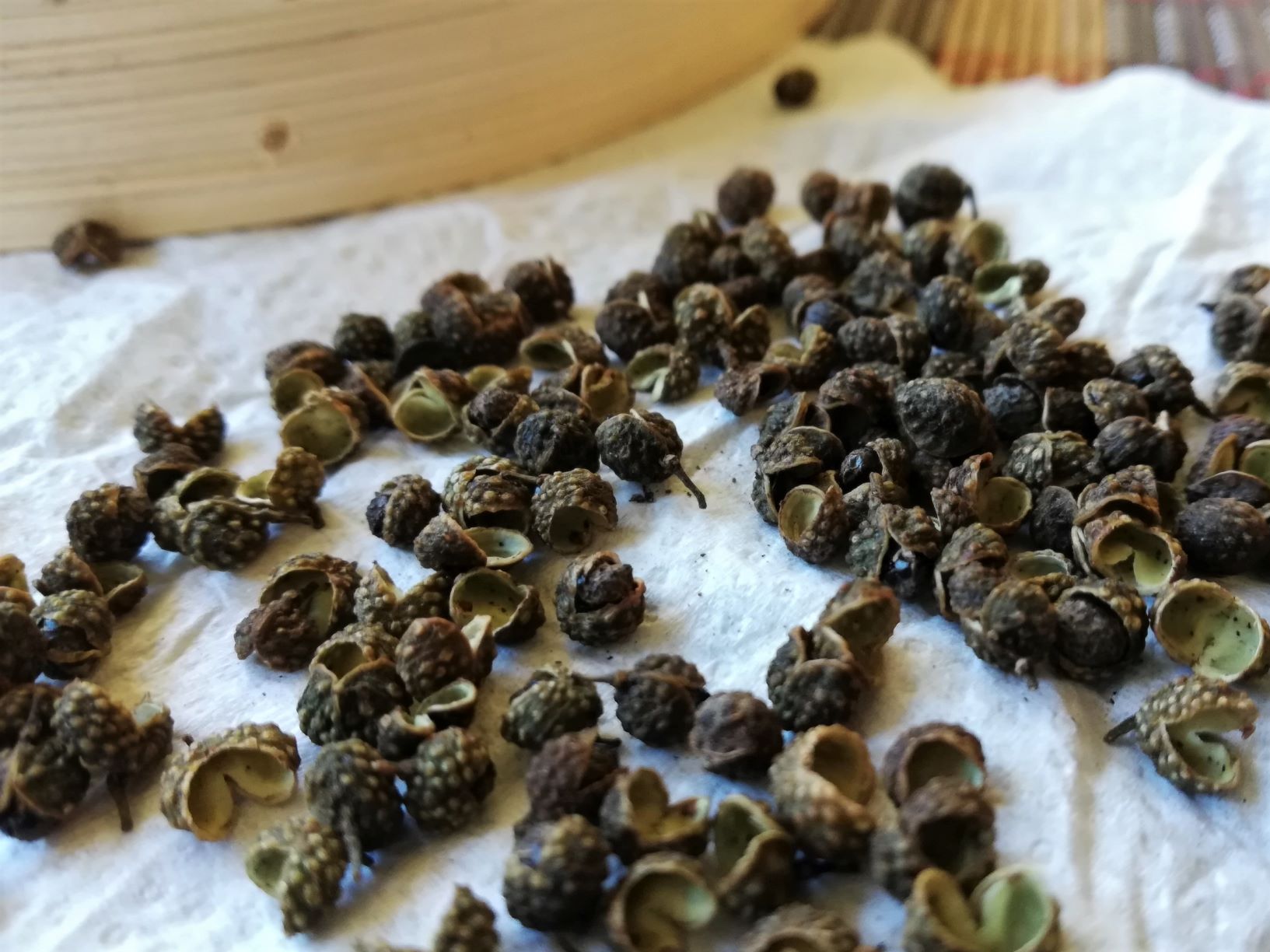 - A szecsuáni borsot mozsárban zúzzuk porrá.