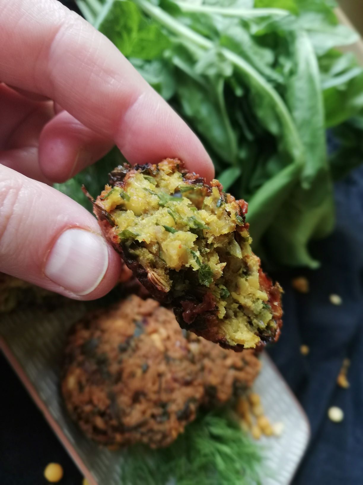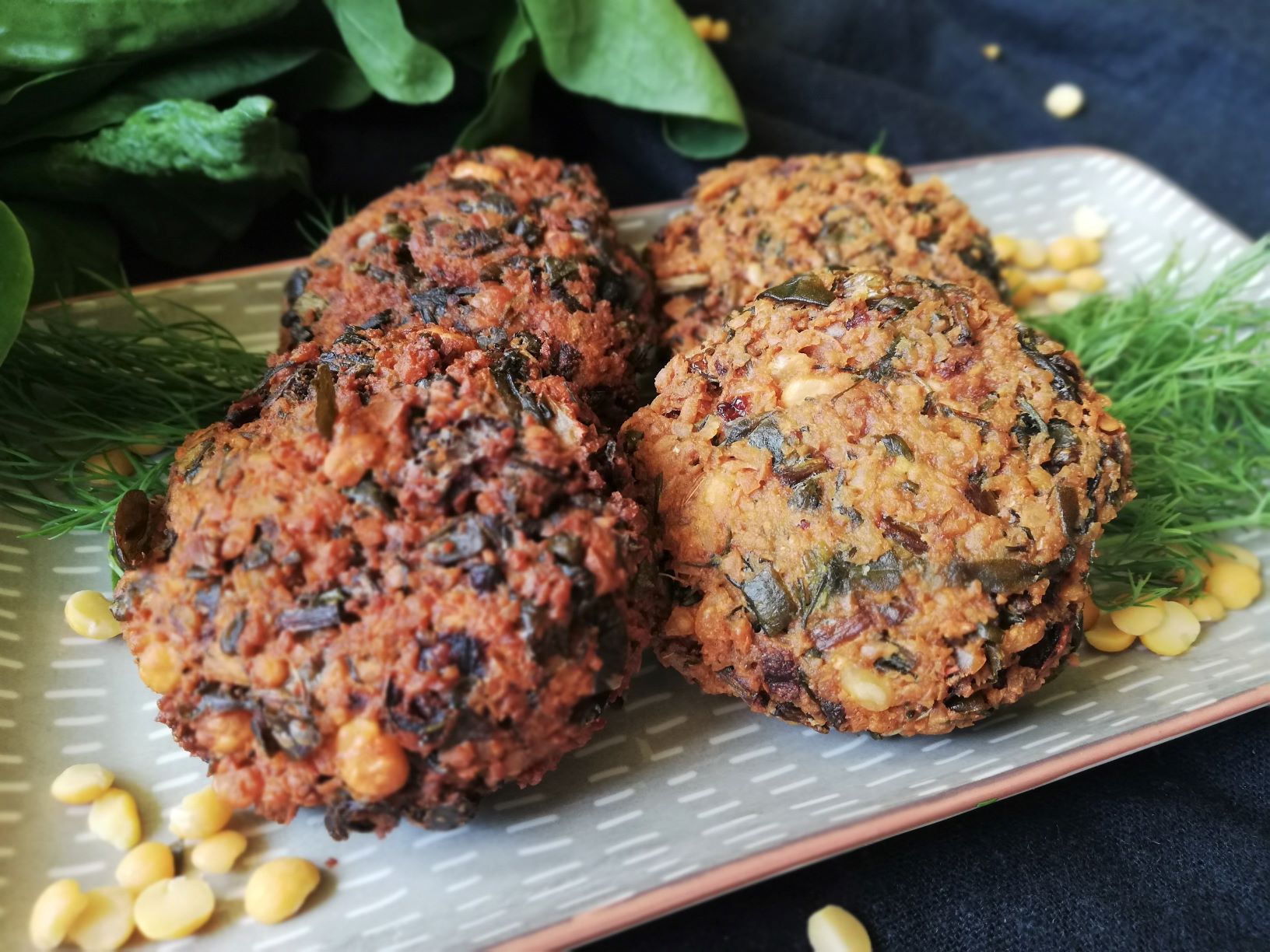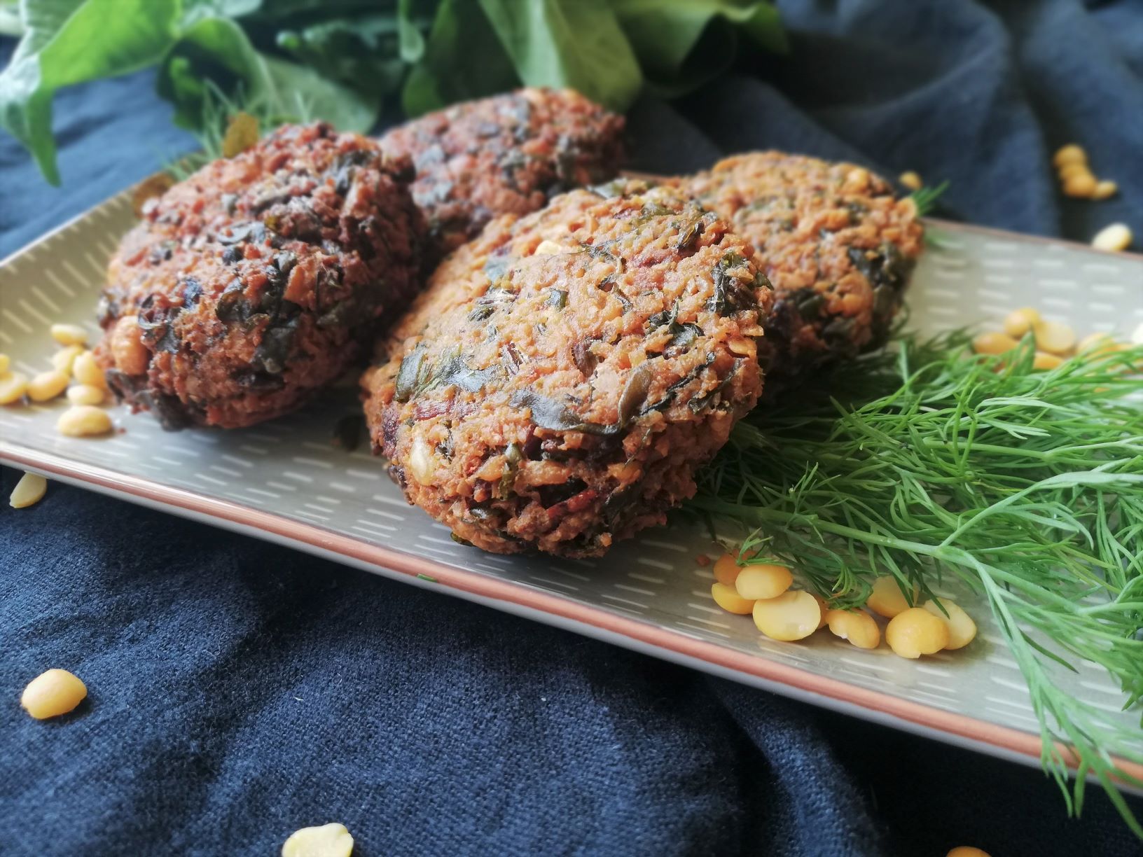 - A pépesített borsóhoz adjuk a többi hozzávalót: lilahagyma, spenót, kapor és fűszerek. Majd kézzel óvatosan, de alaposan keverjük össze a masszát. Kóstoljuk meg. Ha kell, sózzuk meg bátran, ne ijedjünk meg a mennyiségtől és az intenzív ízektől. A kész keverékből készítsünk kb. 1 cm vastag, 5-6 cm átmérőjű pogácsákat. Csak ezután kezdjünk hozzá a sütéshez. Ha nem állna össze a massza, 1-2 evőkanálnyi csicseriborsóliszt hozzáadásával formázhatóvá válik.