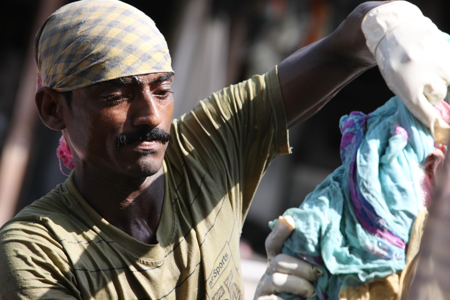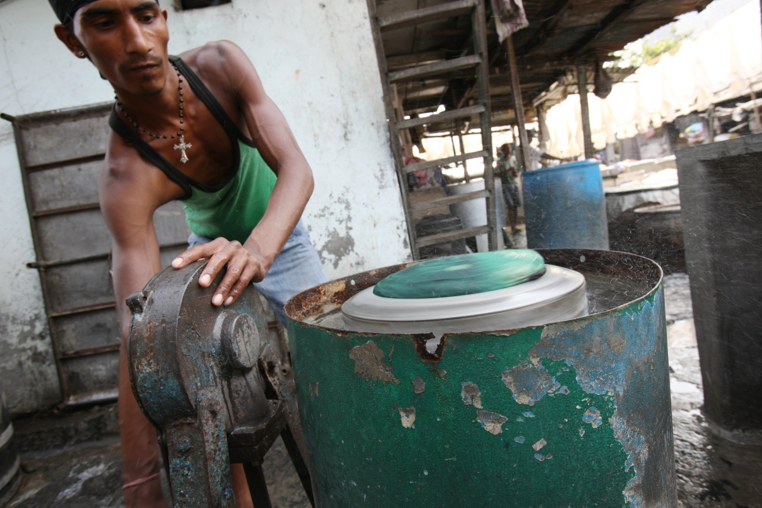 A szabadtéri mosodában a munka rendkívül jól szervezett, olyannyira, hogy a tevékenységek ütemezése szerint az óránkat akár a dhóbikhoz is igazíthatnánk. A munka minden áldott nap napkeltekor a leginkább fizikai erőt igénylő tevékenységgel, a mosással kezdődik. Ezt a férfiak végzik, olyan csupa erő, csupa izom férfiak, mint Gangadar és Radzsu, akik órákon át képesek a mosókőhöz csapkodni a lúgos vízbe áztatott szárikat, nadrágokat, törölközőket. Amikor ezzel megvannak, a tisztára mosott ruhákat Lakshmí, Gangadar felesége géppel csavarja ki, szárítókötélre teregeti, hogy aztán a ruhákat a forró Bombay-i szél alig fél óra alatt megszárítsa. Míg a gúnyák száradnak, az elfáradt dhóbik megebédelnek, kicsit pihennek, teáznak. Majd a patyolattiszta ruhákat összegyűjtik, igény szerint simára vasalják, szállításra előkészítik és jól szervezett útvonalon gyalog vagy furgonnal eljuttatják a megrendelőhöz.