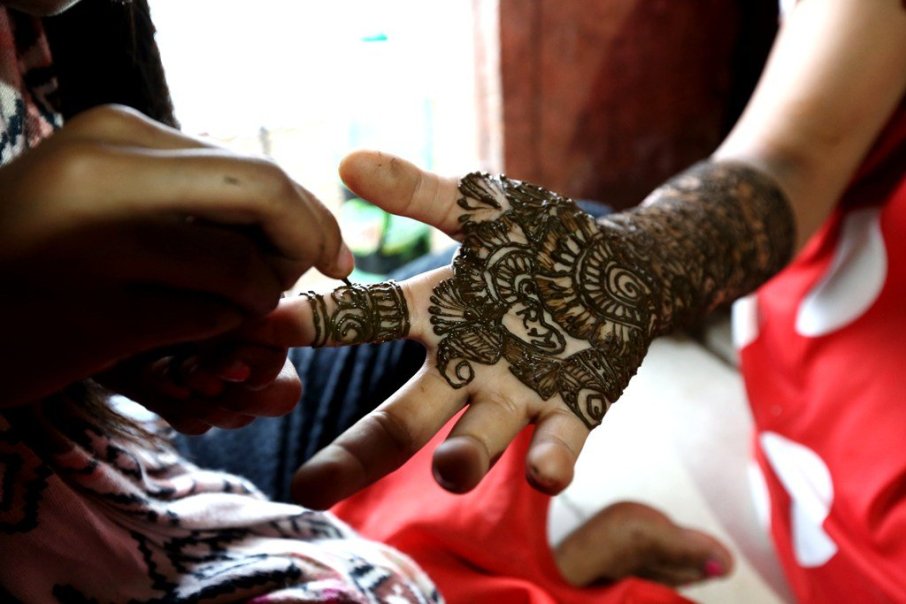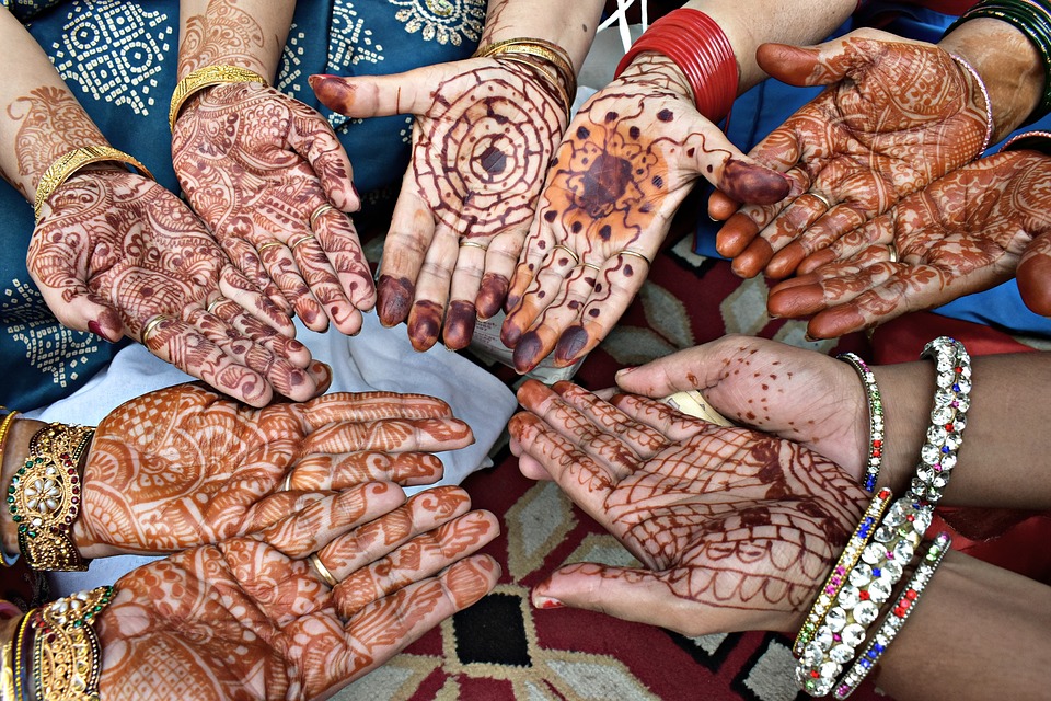 De nem hagyhatjuk ki a legfontosabbat, a hindu esküvőt sem. Indiában az esküvői készülődések elképzelhetetlenek hennaest (mehendi ki raat) nélkül, amely során a menyasszony és a vőlegény – bár mindenki a saját családja körében – a legszebb, legbonyolultabb díszítést kapja. Idő és türelem játéka ez az ünnepély, hosszú órák telnek el, míg megszületik a gyönyörű alkotás. A szépséges mintákról azonban a násznép sem marad le, az áldásból mindenkinek jut bőven, ugyanis hennával a jeles vendégeket is megfestik, arról nem beszélve, hogy a hennafestés amúgy is az esküvői forgatag egyik legörömtelibb és legboldogabb pillanatainak egyike.